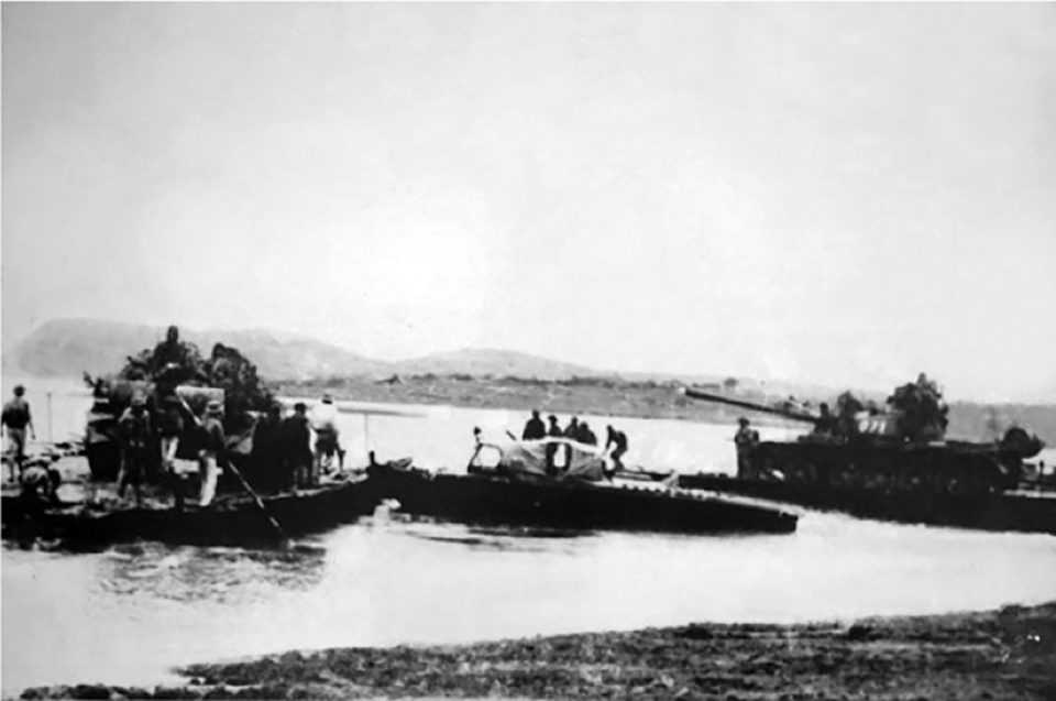 Xe tăng của Quân đoàn 1 vượt sông, chuẩn bị tham gia Chiến dịch Hồ Chí Minh, ngày 2-4-1975. Ảnh: Tư liệu/TTXVN.